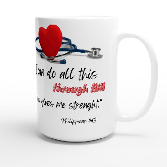 I can do all this through him - White 15oz Ceramic Mug